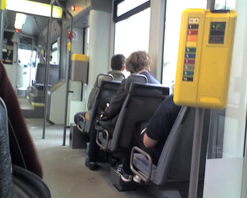 Foto no interior do eléctrico de Antuérpia, as duas personagens fotografadas de costas pareciam sósias do John Lennon (versão 70's) e Sid Vicious...