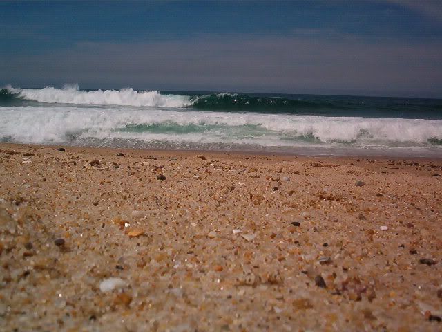 Pela beira-mar dirijo-me à mole de gente presente a sul. Adultos e menos adultos disfrutam da fria água salgada enquanto o salva-vidas conversa com um incauto banhista.
